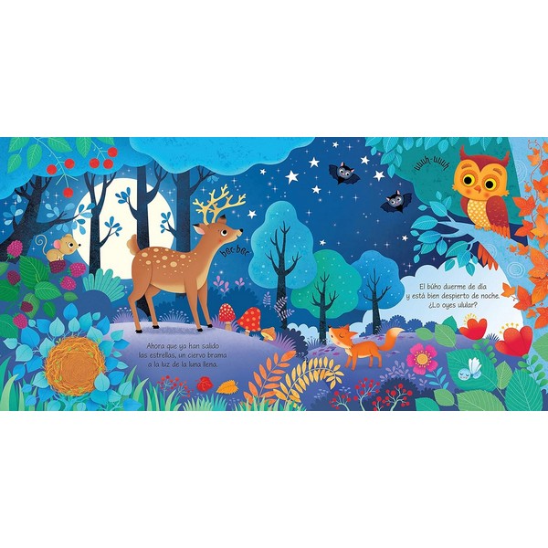 Un libro ideal para que los chiquitines desarrollen el oído, el tacto y la vista a la vez que se divierten.Apretando los botones incorporados en cada página, descubrirán el trino de los pájaros, el murmullo de un arroyo y muchos otros sonidos del bosque. Además, hay ranuras que seguir con el dedito y agujeros por los que mirar para explorar las bonitas escenas.Un nuevo título de nuestra popular colección «Escucho, toco y descubro», creada para pasar ratos estupendos con el bebé y estimular sus sentidos.